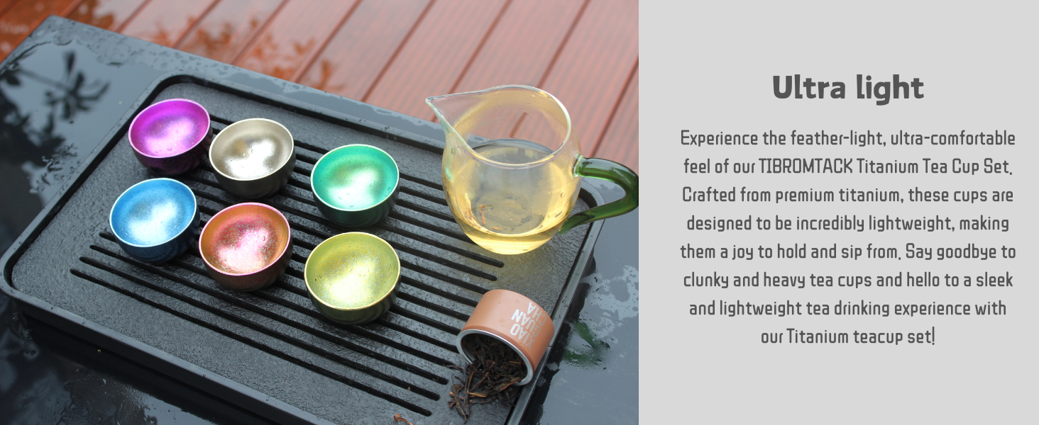 Enjoy pure taste and vibrant style with the TIBROMTACK Double Layer Titanium Tea Cup Set. Crafted from 99.9% pure titanium, each ultra-lightweight, ergonomic cup boasts striking gold, green, natural titanium, purple, and rose pink finishes—perfect for healthy, everyday sipping at home, office, or outdoors.