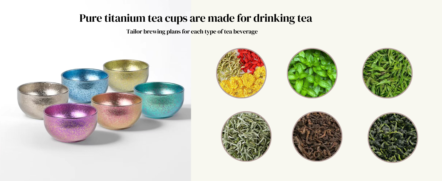 • [Healthy and excellent material]- Pure natural titanium tea sets do not separate heavy metals and do not react chemically with theophylline, caffeine, alcohol, etc., effectively maintaining the original taste of the drink and avoiding any unpleasant odors